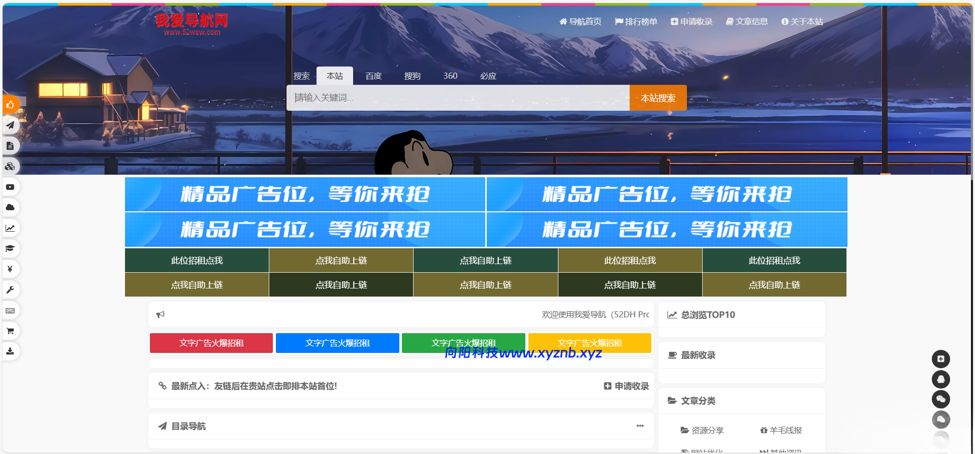 我爱导航系统 (52DH Pro 网址导航系统) 是基于 SiteHub 二次开发的开源免费的网址导航系统,拥有独立前台和拟态风格的后台管理中心。我爱导航系统 (52DH Pro 网址导航系统) 集合网上优质网站网址导航,支持前台自主提交收录、自动获取 TDK 与网站 Icon 与后端审核管理,涵盖网站收录和文章发布等。